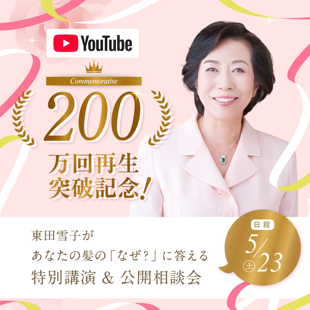 トップ 製品情報|商品一覧 特別講演&公開相談会 YouTube200万回再生突破記念! 東田雪子があなたの髪の「なぜ?」に答える 特別講演&公開相談会 参加チケット